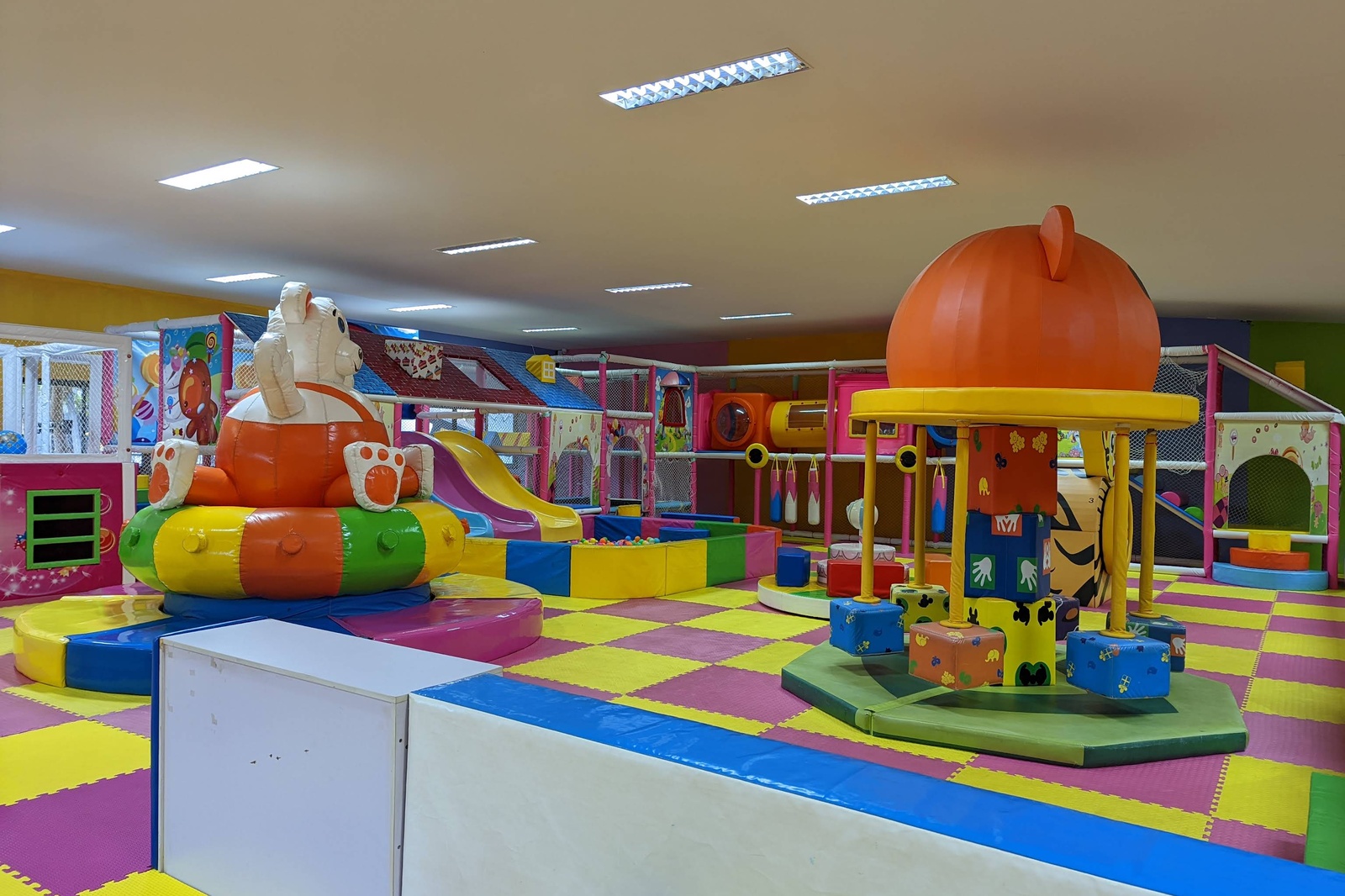 А для самых маленьких (от 1 до 6 лет) есть комфортабельная игровая комната с кондиционером. Буйство красок, увлекательные игры, карусель, бассейны с шариками, горки и скалодром – здесь время летит незаметно, оставляя после себя лишь счастливые воспоминания.