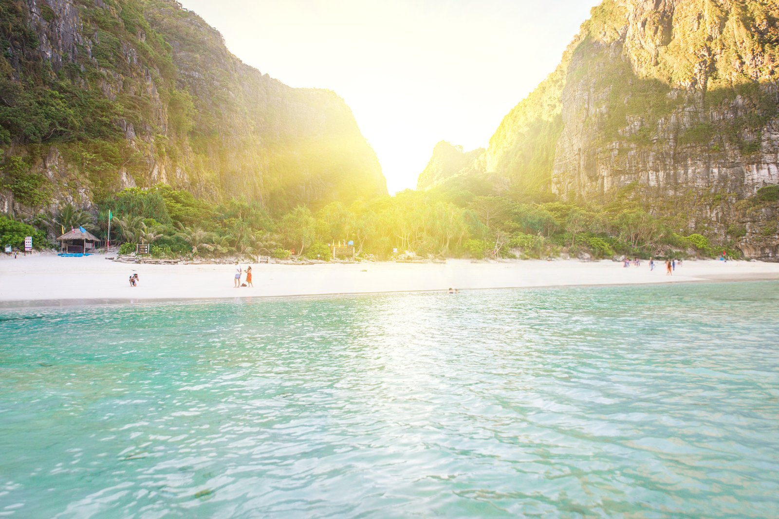 Бухта Майя – это место ослепительной красоты, с трех сторон защищенное стометровыми скалами. Внутри бухты есть несколько пляжей, большинство из которых совсем крошечные, а некоторые появляются только во время отлива. Главный пляж протянулся примерно на 200 метров и славится своим шелковым мягким белым песком. Подводный мир полон разноцветных кораллов и экзотических рыб, а вода кристально чиста. Вся бухта представляет собой один большой риф.