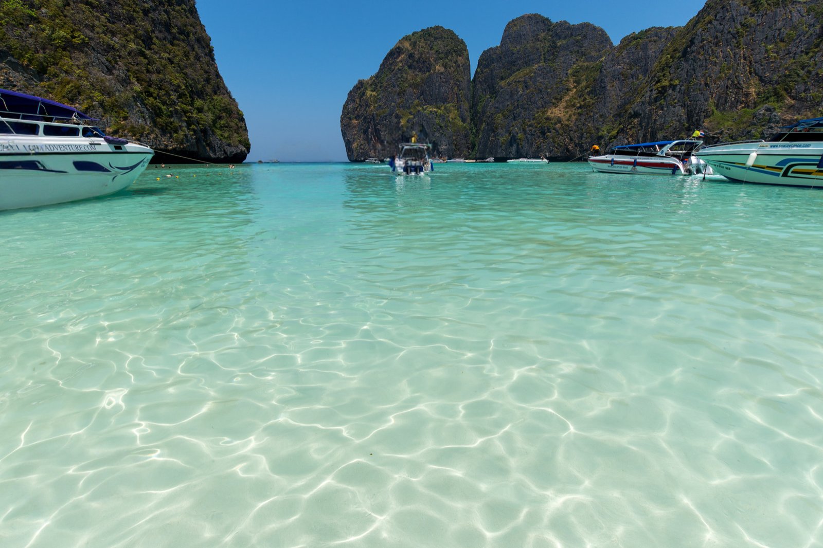 Есть и плохая новость. Из-за невероятной красоты множество лодок курсируют туда и обратно, доставляя посетителей. В любой день и в любой момент времени на пляже можно увидеть более 30 скоростных катеров и лонгтейлов, а поодаль, на глубине стоят на якоре большие паромы с сотнями любителей снорклинга. Ежедневно здесь бывают тысячи людей. Если вы хотите избежать толп, то постарайтесь приехать рано утром или после 17:00. Красиво – да, уединенно – нет.