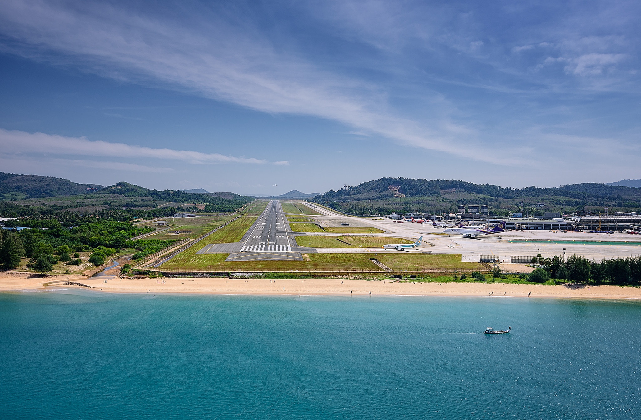 Аэропорт Пхукета (HKT) – врата на остров, распахнутые для большинства путешественников. Пульсирующее сердце Таиланда, занимающее почетное второе место по объему пассажирских и грузовых перевозок. Сквозь его два терминала, словно реки, ежегодно протекают более 14 миллионов человек из 37 разных уголков света. Почти 100 000 небесных странников, ведомых 46 авиакомпаниями, мягко касаются его единственной взлетно-посадочной полосы каждый год. Место, где расположился аэропорт – само по себе чудо Таиланда, ведь он стоит у самой кромки пляжа Май Кхао. В высокий сезон серебристые птицы, словно ласточки, скользят прямо над головами отдыхающих, готовясь к посадке. А взмывая ввысь, курсом на север, пилоты дарят пассажирам незабываемый вид на бухту Пханг Нга – роскошный гобелен, сотканный из скал и изумрудной воды.