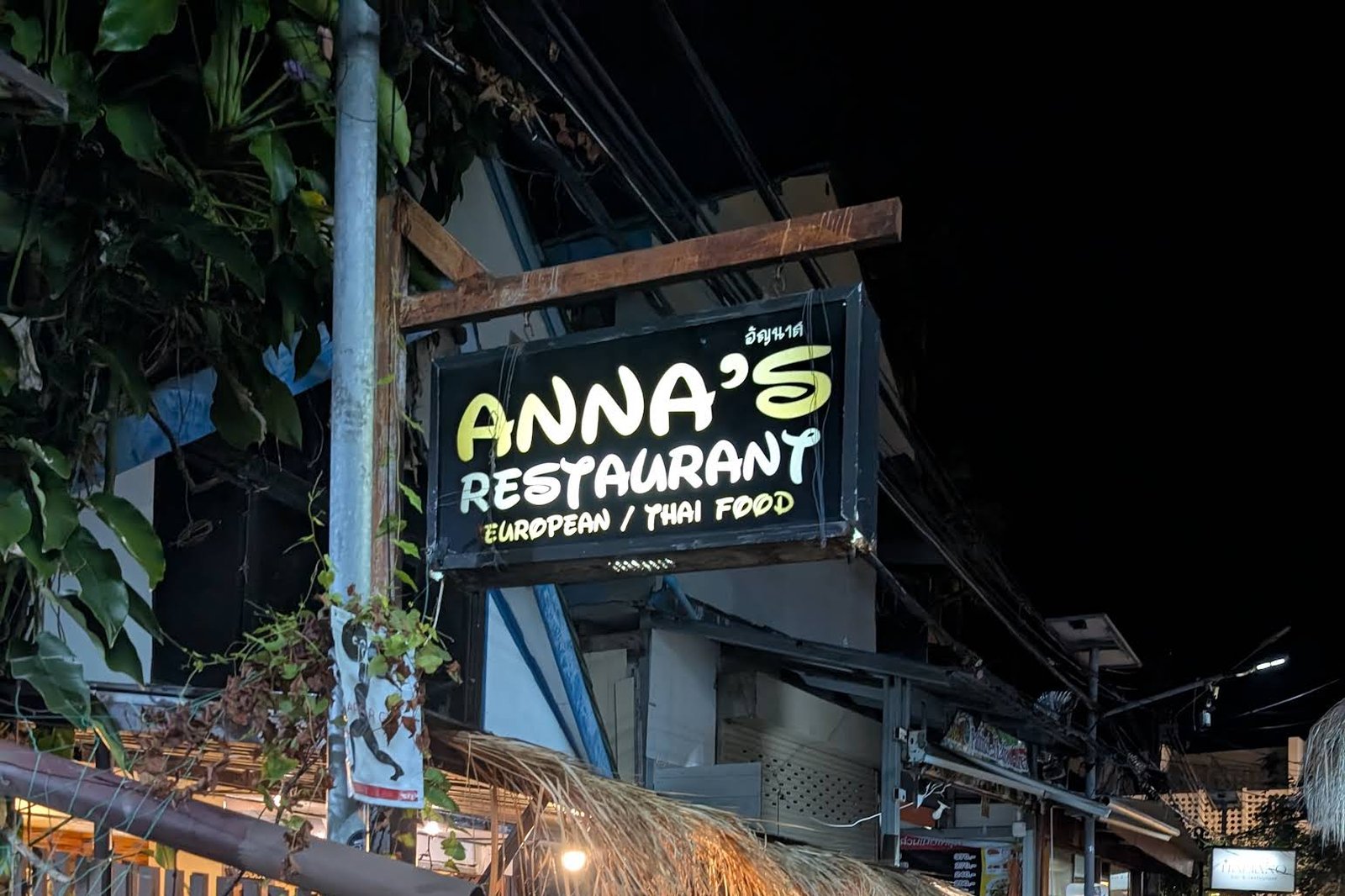 Anna's Restaurant – это семейный ресторан с многолетней историей, расположенный прямо рядом с дайв-центром Moskito Diving (с которым он тесно связан) на узкой улочке, ведущей к рынку Phi Phi Market, в стороне от главной улицы. Чтобы найти его, идя от пирса, сверните налево прямо перед рестораном Italiano Restaurant. Выдержанный в современном тайском стиле с белыми стенами, темной деревянной мебелью и балками, бежевой плиткой на полу, а также местным текстилем и произведениями искусства на стенах, Anna's выглядит шикарно, но при этом расслабленно и очень чисто.