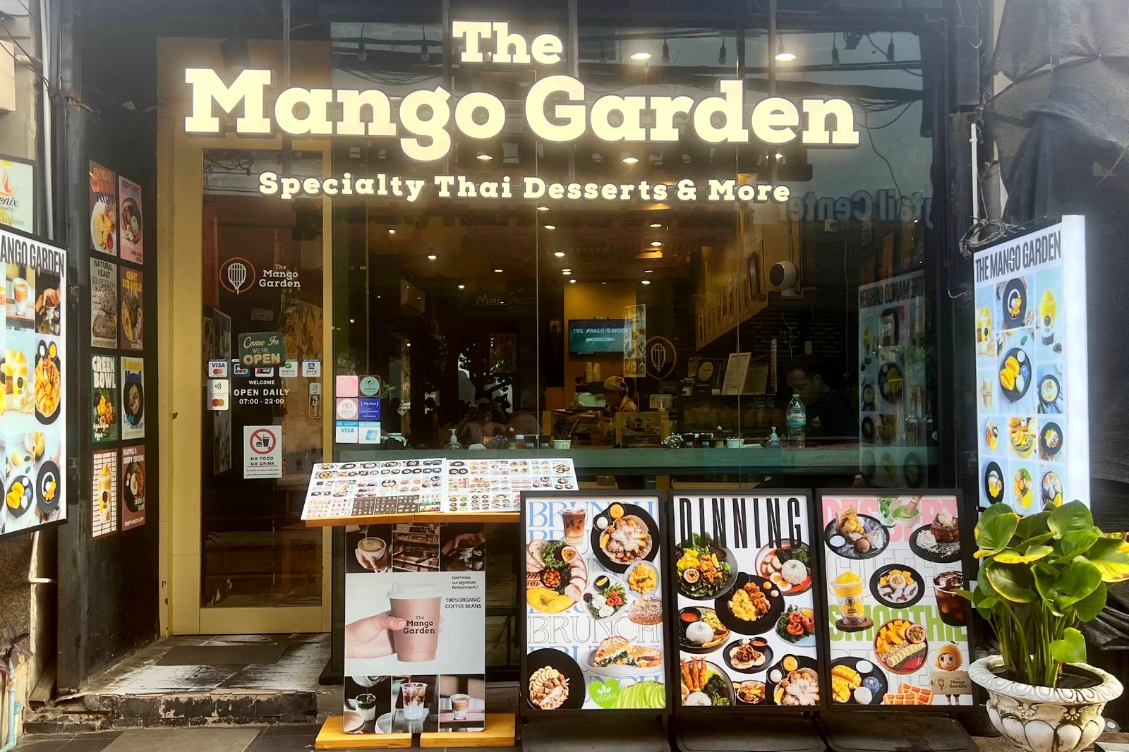 Как следует из названия, в большинстве блюд, подаваемых в кафе The Mango Garden, присутствует один из самых любимых фруктов Таиланда – манго. В этом стильном кофе, специализирующемся на фруктах, вы можете попробовать короля тайских десертов – манго с клейким рисом, а также отличный выбор смузи, соков и других фруктовых продуктов. Здесь подают завтраки в течение всего дня, и вы можете насладиться широким ассортиментом кофе и чая. Заведение небольшое, но его современный дизайн, прохладная атмосфера и кондиционер предлагают освежающий отдых от жаркого и влажного морского климата Пхи-Пхи.
